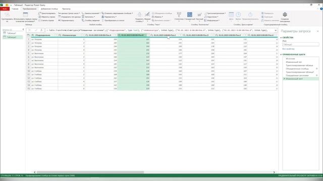 Преобразование таблицы с двумя заголовками в плоскую таблицу в Excel power query