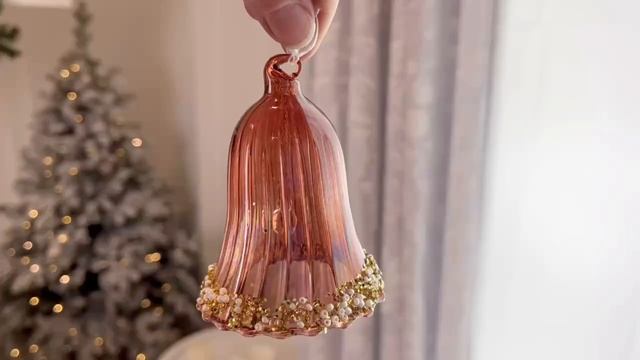 Набор стеклянных ёлочных колокольчиков JINGLE BELLS, нежно-розовый, янтарный, 120376