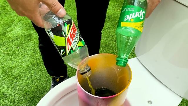 Смешивание конфет Mentos с Coca-Cola, Sprite, Red Bull, Fanta Red и Mtn Dew в туалете
