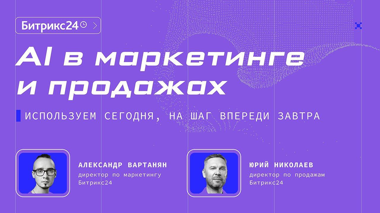 Доклад в рамках конференции для руководителей и предпринимателей «Диалог с AI 2023» 5 октября. AI в маркетинге и продажах: используем сегодня, на шаг впереди завтра: ️️️️️️Как добиться от ИИ того результата, который вы хотите ️️️️️️Как GPT помогает управлять командой и онбордить новых продавцов ️️️️️️Как генеративные сети могут улучшить рекламу: контент, performance, брендинг ️️️️️️Как нейросети помогают в продажах уже сегодня, и что ИИ изменит завтра Спикеры: Александр Вартанян, директор по маркетингу Битрикс24 Юрий Николаев, директор по продажам Битрикс24 ТАЙМКОД: 0:00 — Вступление 1:47 — Маркетинг и лидогенерация 3:39 — Что отличает хорошего маркетолога от плохого? 6:19 — AI в маркетинге 11:04 — Правильные промты 23:34 — AI в продажах 30:25 — Польза AI+CRM Подписывайтесь на канал: https://www.youtube.com/channel/UCCaFbhrkxpOvVbgewxfjoRg?sub_confirmation=1 Читайте нас ВКонтакте: https://vk.com/bitrix24 Получайте инсайты в Telegram-канале: https://t.me/bitrix24_ru В TenChat: https://bit.ly/3ipjI6P И в Яндекс.Дзен: https://dzen.ru/bitrix24 Канал Битрикс24.Обучение: https://www.youtube.com/@bitrix24_education #ai#нейросети #битрикс24 #искусственныйинтеллект #ии #gpt