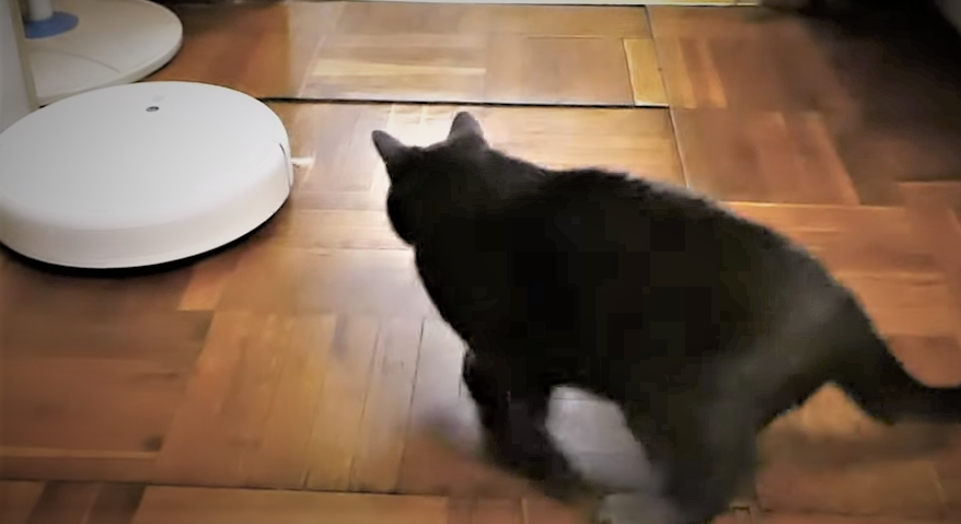 Кошка Буся против робота пылесоса от Ксиаоми! Кошка играет с роботом пылесосом.