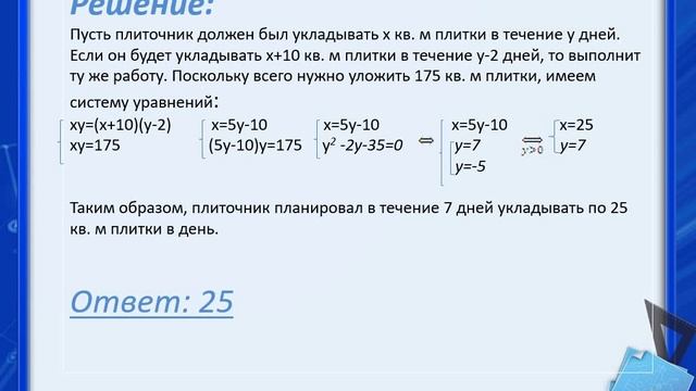 Решение задач из сборников ЕГЭ по математике, профиль, задачи на совместную работу №2