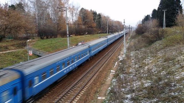 бригаде сквозь года СПАСИБО! 19 октября 2014 года в 17:42 платформа Пионерская перегон Одинцово - Голицыно белорусской направление Московская железная дорога CHS7-0XX Blue with train # 77 "Neman" Moscow-Grodno on pl. Pionerskaya brigade through the years THANKS! October 19, 2014 at 17:42 Pionerskaya platform section Odintsovo - Golitsyno Belorusskoe direction Moscowskaya railway
