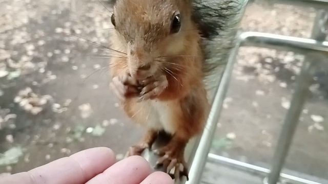 Кормлю белку в дождливую погоду
