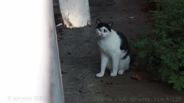 Уличный кот Гоша. Снято на Canon 250D Юпитер-11А 4/135.