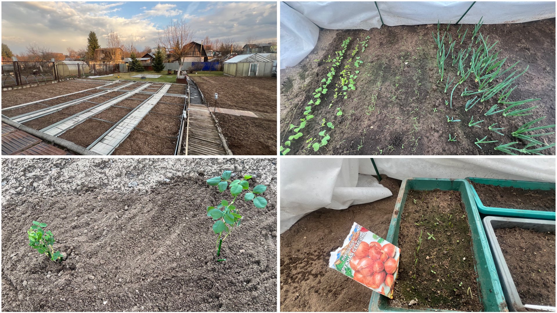 19 апреля. На даче. Посадка роз. Уборка листвы. Приборка клумбы