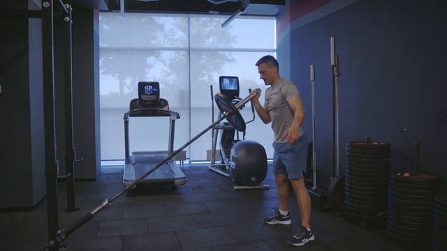 Толчковый швунг Лендмайн одной рукой_ Single arm Landmine push jerk