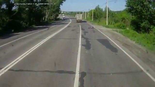 В этом случае довольно трудно объяснить действия женщины. Происшествие произошло на трассе в России и было снято на регистратор грузовика.
