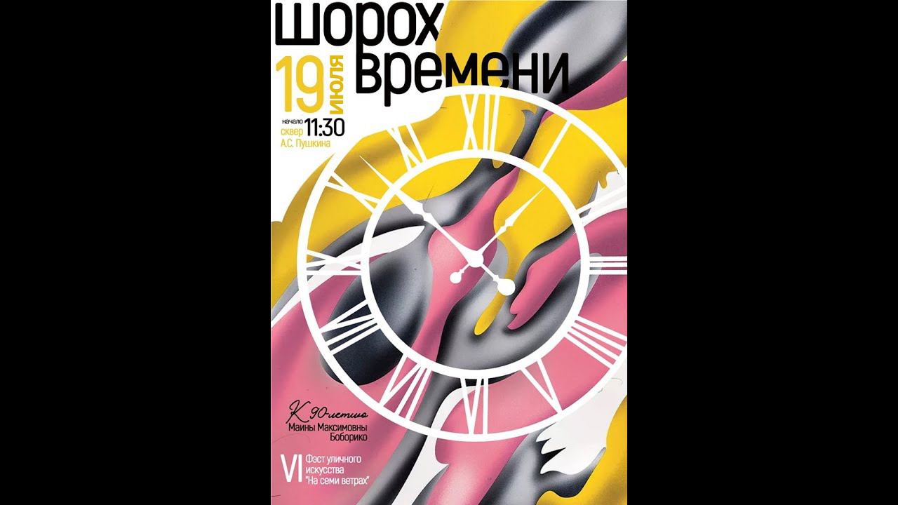 VI Фэст уличного искусства "На семи ветрах" представляет музыкально-поэтический концерт "Шорох времени". Мероприятие посвящено витебскому поэту, сказочнику Маине Максимовне Боборико. Ведут программу: Олег Сешко, Елена Крикливец. 19 июля 2020 года, г. Витебск, сквер имени А.С. Пушкина.