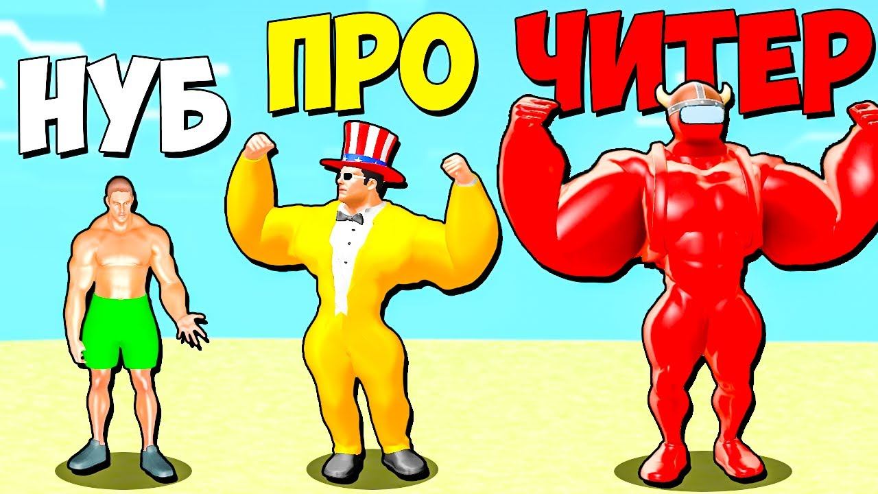 ЭВОЛЮЦИЯ КАЧКА от НУБА до ЧИТЕРА МАКСИМАЛЬНЫЙ УРОВЕНЬ! Muscle Rush Funny Games TV NOOB vs PRO vs HACKER #fgtv #фгтв