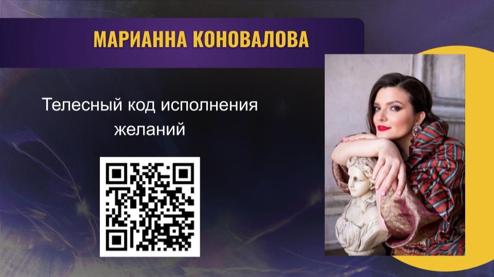 🧘♀️ ЭФИР «ТЕЛЕСНЫЙ КОД ИСПОЛНЕНИЯ ЖЕЛАНИЙ» ЗАВЕРШЁН, ВАШ ДИАЛОГ С ТЕЛОМ ТОЛЬКО НАЧИНАЕТСЯ Друзья, уникальная живая практика, где мы учились слышать язык своего тела и находить ключи к исполнению желаний, уже состоялась. Марианна Коновалова провела глубокий и честный разговор о том, почему наше тело порой живёт по другому сценарию, чем наш разум, и как это исправить. Если вы чувствовали внутренний разлад между тем, чего хотите, и тем, что происходит, или замечали, как тело саботирует ваши планы, — эта запись для вас. 🎯 ЧТО ВЫ УВИДИТЕ В ЗАПИСИ ЭФИРА? Вас ждёт не лекция, а практическое погружение, где теория телесно-ориентированной терапии оживает через личный опыт: · ✨ Расшифровка языка тела: Почему оно хранит страхи, блоки и истинные мечты, и как научиться его понимать. · 🛑 Причины «торможения»: Какие незавершённые эмоции и старые сценарии мешают желаниям сбываться на физическом уровне. · 🔓 Ключ к изменениям: Что можно сделать, чтобы тело перестало сопротивляться и начало помогать вам двигаться к целям. · 💡 Научный подход с теплом: Профессиональный разбор, подкреплённый примерами из практики, юмором и бережным отношением. Это ваш шанс договориться с самым честным собеседником — вашим собственным телом — и открыть ему путь к лёгкому воплощению мечты. 🎤 Ведущая: Марианна Коновалова (интегративный телесный терапевт, сексолог, фасилитатор) 🤝Связаться с Марианной ТГ https://t.me/+tCnOspgXFBw2M2Qy ИГ https://www.instagram.com/mariannakonovalova?igsh=MXFkeTZzdnRmdWtlMg== Ютуб https://youtube.com/@vitnusya?si=lTU9FzZDQ0zAqVCt 🔥Всероссийский масштабный фестиваль саморазвития и трансформаций Билеты здесь ⤵️ https://mystery-fest.ru/mysteryfest