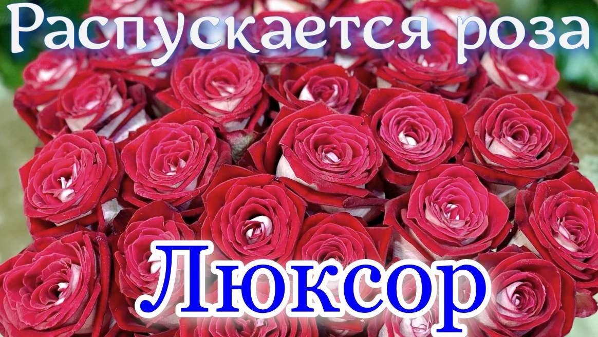 Time-lapse Rose flowering Luxor (De Ruiter's 2006) Luxor - уникальный сорт срезочной чайно-гибридной розы, представленный в Нидерландах компанией De Ruiter's Nieuwe Rozen B.V. в 2006 году как «Luxor». Luxor покоряет своими роскошными цветами с неординарной двуцветной окраской. Цветок сочного, бордово-красного цвета со светло-бежевым, почти белым цветом оборотной стороны бархатистых лепестков. Бутоны крупные, бокаловидные, 5-6 см в диаметре и около 10 см в высоту, раскрываются очень медленно. Изящные загибы по краям создают контраст и придают бутону особенную торжественность. Сам цветок плотный, чашевидный, махровый (36 -55 лепестков), очень большой, 13-15 см в диаметре, почти без аромата. Цветение в основном на побегах одиночными цветками, повторное в течение сезона. Бутоны и цветки устойчивы к дождям, долго, 8-10 дней могут простоять в вазе, не утрачивая декоративности. Побеги крепкие, в нижней части слегка шиповатые, на длинных стеблях с бутонами шипов практически нет. Листва глянцевая, зеленая с внешней стороны и красноватая снизу, с хорошей устойчивостью к основным заболеваниям. Куст розы компактный, ветвистый, высота в открытом грунте до 150 см, ширина от 50 до 70 см. Гибрид был выведен путем сложной селекции, поэтому при выращивании в садовых условиях саженцы долго адаптируются к новой среде. Для полноценного цветения требуется интенсивный уход, размещение на хорошо освещенном участке, без попадание прямых лучей на растения, защищенном от ветра месте. Зона USDA с 6b по 9b Luxor is located in the Netherlands in De Ruyter-New Rosen B.V.This is a unique variety of cut tea-hybrid rose, which was introduced as "Luxor" in 2006 by Luxor. Luxor conquers with its magnificent flowers with a special two-tone coloring. The flowers are juicy, burgundy-red in color, with a bright beige, almost white shade behind velvety petals. The buds are large, goblet-shaped, 5-6 cm in diameter and about 10 cm in height, open very slowly. The elegant curves of the edges create a contrast and give the buds a special solemnity. The flower itself is dense, cup-shaped, terry (36-55 petals), very large, 13-15 cm in diameter, almost fragrant. Flowering occurs mainly in buds with a single flower, which is repeated throughout the season. The buds and flowers are resistant to rain and can stay in the vase for a long time, 8-10 days, without losing their decorative effect. The buds are strong, slightly prickly at the bottom, and there are practically no prickles on long stems with buds. The leaves are shiny, green on the outside, reddish on the bottom, resistant to major diseases. The rose bush is compact, branched, height in the open ground up to 150 cm, width 50-70 cm. Hybrids were bred by complex breeding, so when grown in garden conditions, seedlings need a lot of time to adapt to a new environment. Intensive care is required for full-fledged flowering, it should be placed in a bright place, protected from the wind, without direct sunlight on the plant. △6b△9B