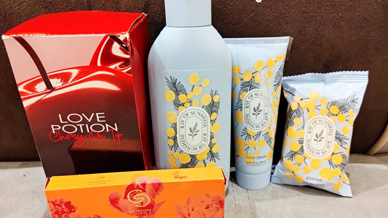 Состав заказа по каталогу № 3 Oriflame: - Парфюмерная вода "Love Potion Cherry On Top"; - Набор "Ray of Sunshine" (гель для душа, крем для рук, мыло); - Палетка для макияжа Giordani Gold. Мой канал в Дзен: https://dzen.ru/natalierock64 Мой канал в YouTube: https://www.youtube.com/c/НаталиРок Короткие видеообзоры публикую здесь: * Nuum: https://nuum.ru/channel/natalierock * Yappy https://yappy.media/n/natalierock?utm_source=url&utm_medium=share&utm_campaign=profile