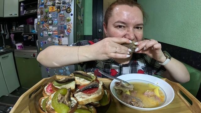 Гороховый суп на говяжьей косточке, бутерброды со шпротами #еда#вкусная домашняя еда
