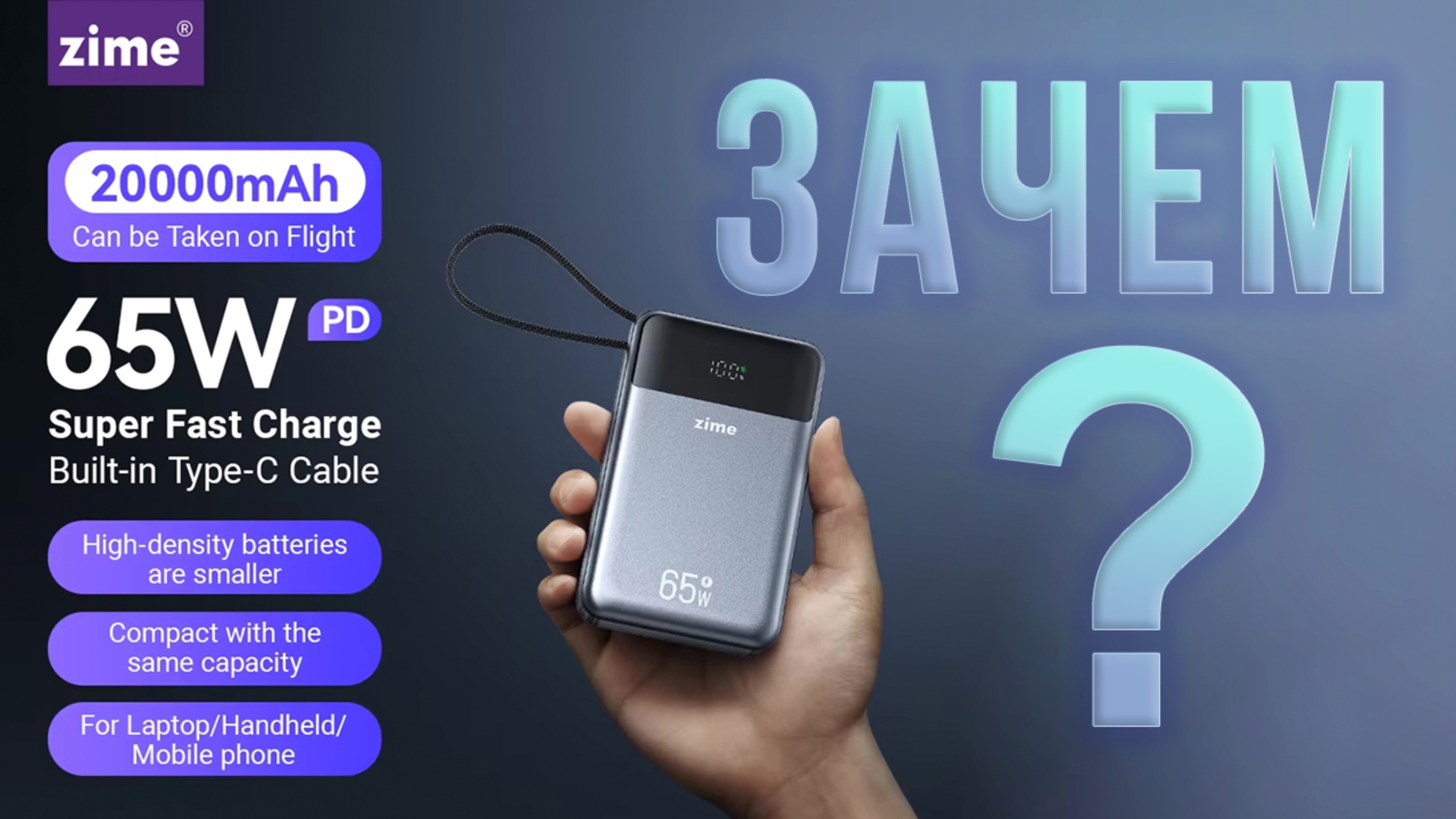 PowerBank ZIME 65W со встроенным кабелем - зачем нужна функция сброса быстрой зарядки кнопкой?
