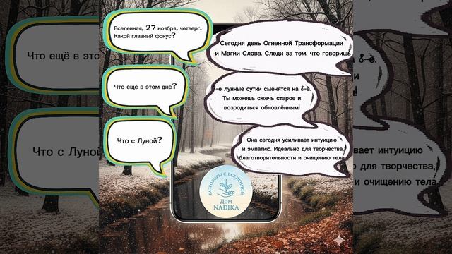 🔥 День Феникса! Трансформация и Интуиция! 🧠Четверг, 27 ноября, требует от тебя смелости к переменам! Твой план на день: Магия Слова (Утро): Следи за тем, что говоришь. Слова сегодня имеют силу! Возрождение: Начинается 8-й лунный день. Сжигай мосты, которые тянут вниз, и начинай новый этап! Доверься интуиции. Отличное время для творчества и помощи другим. Главный совет: Не бойся перемен! Феникс дарит тебе шанс обновить себя! Смотри краткий диалог, чтобы узнать, как использовать эту мощную энергию! #27Ноября #ПрогнозНаДень #8ЛунныйДень #Феникс #Трансформация #МагияСлова #ЛунаВРыбах #Интуиция #Творчество #Четверг #АстроПрогноз #Перемены