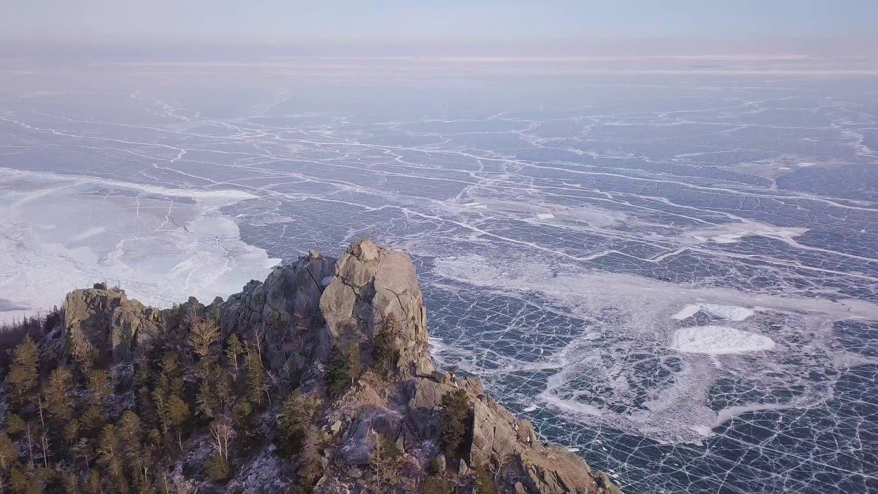 4 Бесплатное видео 4K с дрона. Free 4K video.Frozen lake Deep blue ice, cracked mountains.