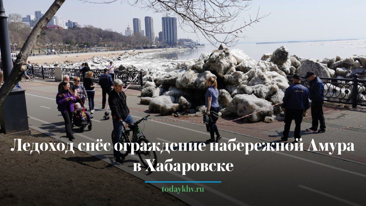 Ледоход сломал ограждение на набережной Хабаровска