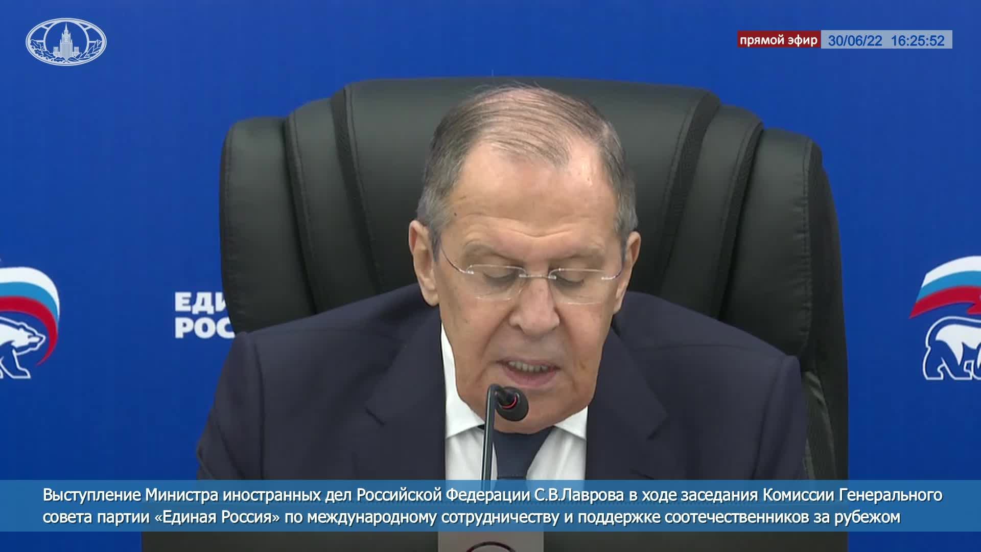? #ПрямойЭфир: Выступление С.В.Лаврова на заседании Комиссии Генсовета «ЕР» по межд. сотрудничеству
