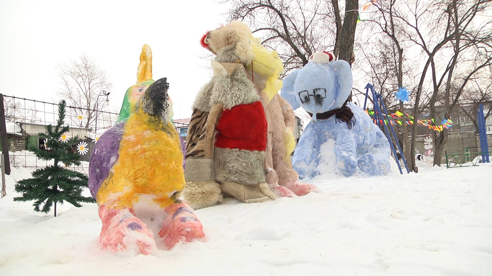 В одном из курганских дворов на улице Томина появились сказочные персонажи из советского мультика «Тридцать восемь попугаев».