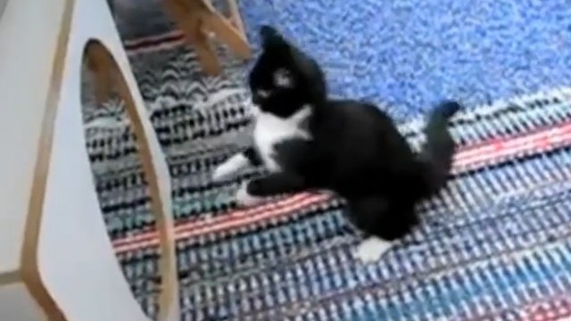 Кот борется со своим отражением