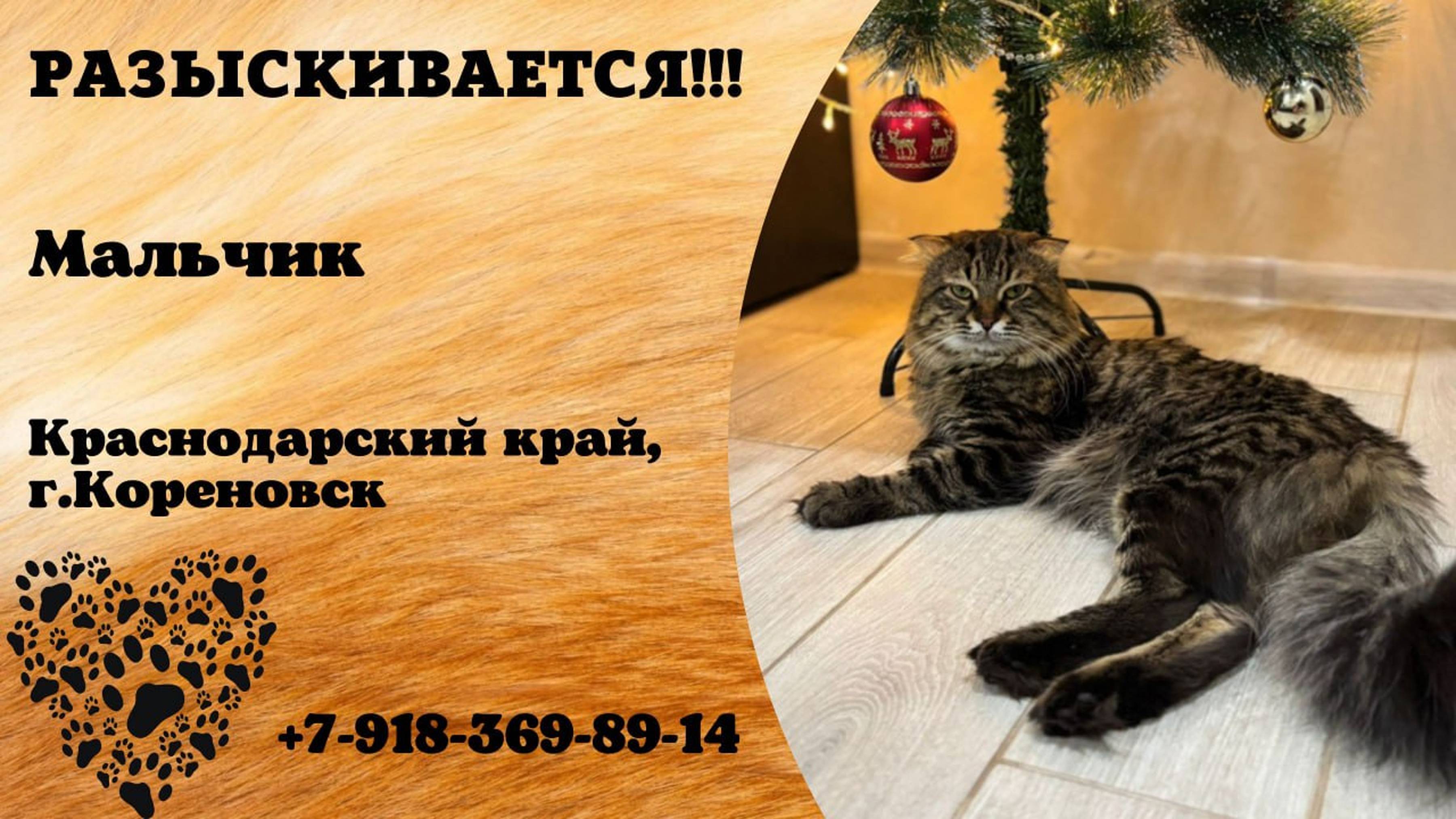 Пропал кот! Мальчик. Краснодарский край, г. Кореновск