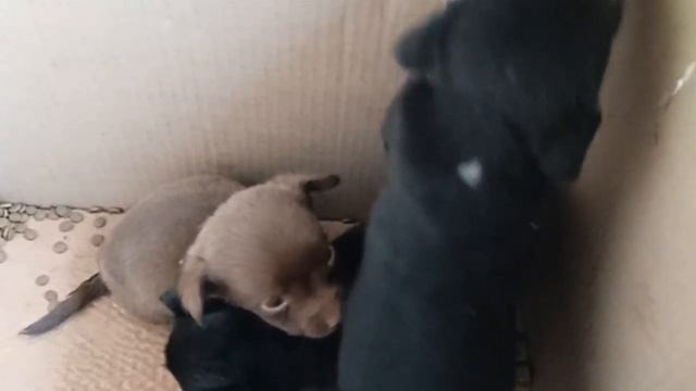 Очередная коробка с маленькими щенками