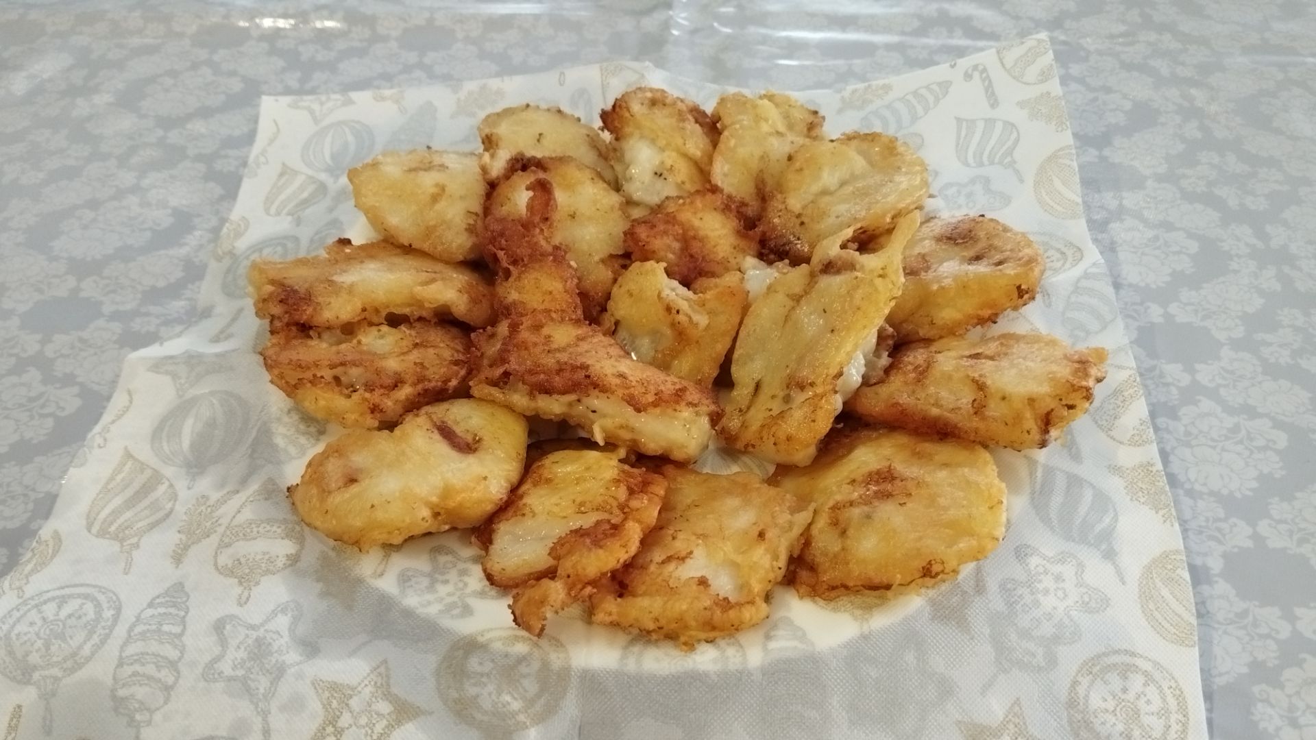 Рыба в кляре.Грядка под капусту. Идет дождь.