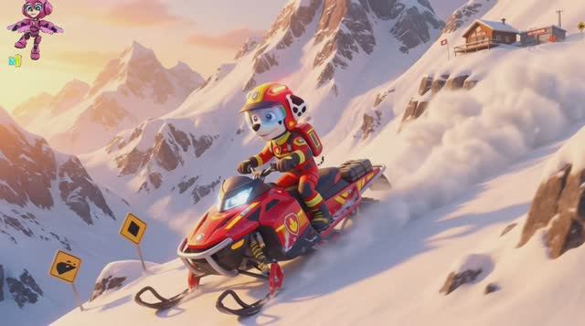 Щенячий патруль, Скай, Маршал, Эверест, Гончик, Крепыш и Зума катаются на снегоходах, Для детей