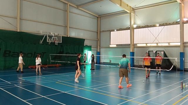 Тренировочная игра в бадминтон через сетку. Играют любители, новички и опытные бадминтонисты. Игра на сборах в доме отдыха Снегири от клуба Искра #badminton #badmintonlovers #badmintonrussia #бадминтон #искра #iskra #snegiri #снегири