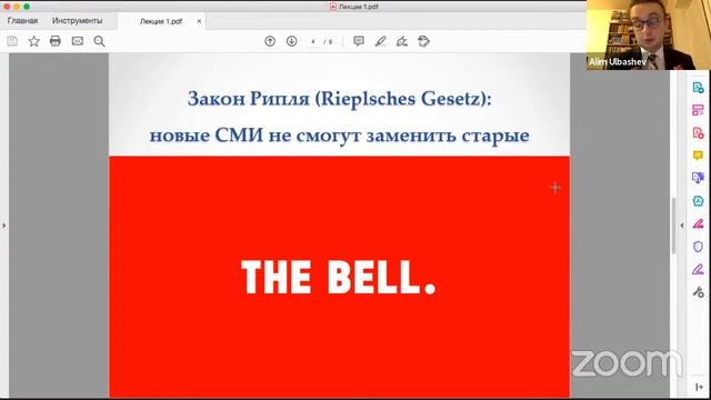Курс Алима Ульбашева в Школе мастеров ЮФ МГУ: «Новые медиа против старого права». Курс подготовлен при поддержке НОЦ "Право и СМИ" . Лекция 1: «Волки и овцы: право и новые медиа». Понятие новых медиа. Почему Закон о СМИ 1991 г. до сих пор молчит о новых медиа? Закон Рипля (Rieplsches Gesetz). Журналист – блогер – гражданский активист: трансформация ключевых понятий и будущее профессиональной журналистики. Не прогуляй своё будущее! 0:00 – вводная часть; 4:46 – Происхождение термина «новые медиа»; 5:06 – Что принято понимать в некоторых зарубежных и российских публикациях под «новым медиа»; 5:26 – Понятие «новых медиа» в 60-е годы в США; появление журналистики мнений; 10:26 – Эволюционирование «новых медиа» в 90-х годах; 11:52 – Быстрота развития «новых медиа» на примере Clubhouse; 13:10 – Возникновение понятия User-Generated Content и его признаки; 22:10 - Определение «старого» средства массовой информации? Свойства и критерии СМИ; 35:00 - Закон Рипля: происхождение и его суть; 48:51 – Субъекты права в медиаотношениях; 56:18 – Отличие журналиста от литератора; 1:04:44 – Отличие центральных понятий «активист», «блогер», «журналист»; понятие «журналист», кто им не является; 1:06:17 – Понятие «блогер» и попытка закрепить его в законодательстве; 1:23:10 - Понятие «активист» и их деятельность в медиа пространстве 1:27:00 – Прощание и презентация следующей лекции