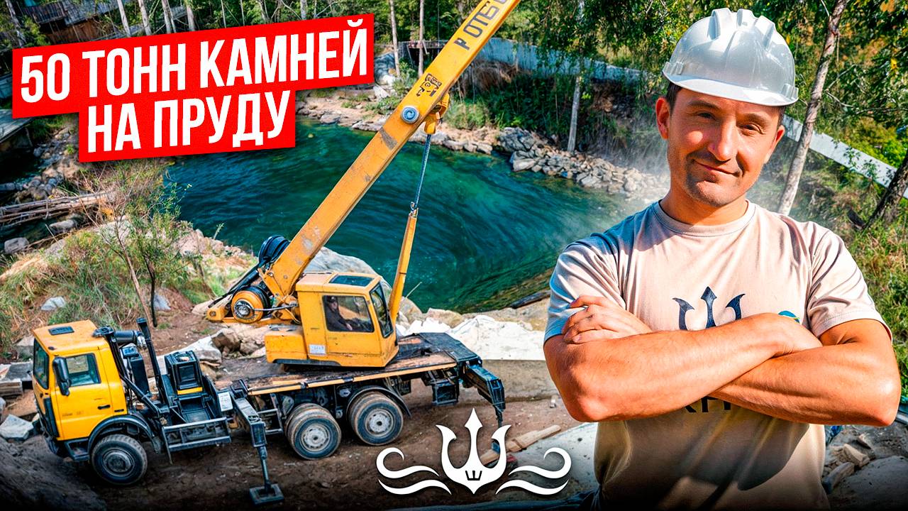 Глыбы в пруду | Работа с натуральным камнем | Декорация пруда камнем