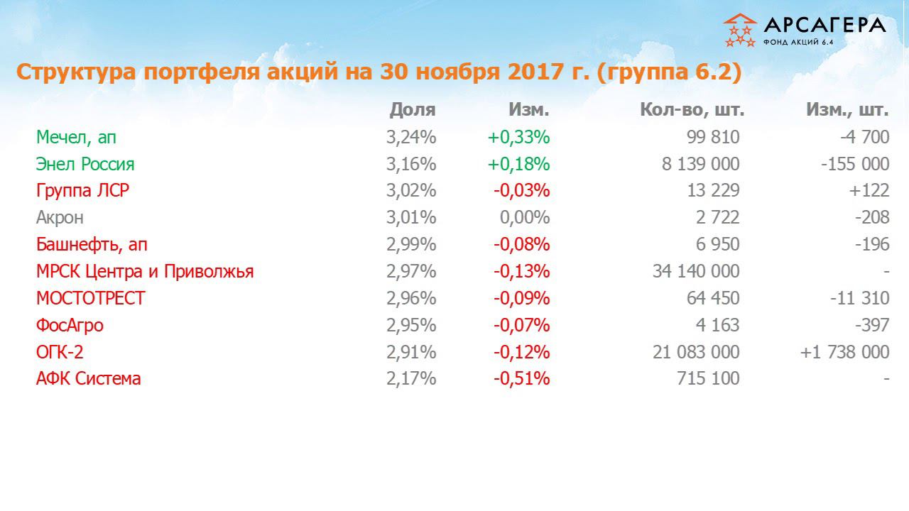 Наши фонды. Арсагера – акции 6.4. Отчет #90 за ноябрь 2017 года