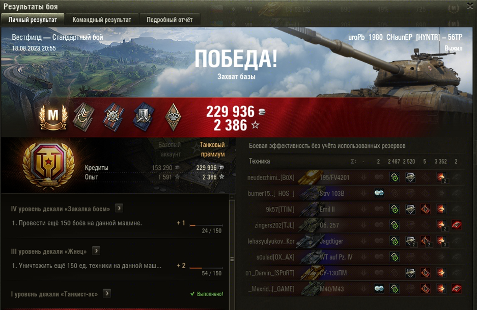 ВЕСТФИЛД МАСТЕР на 56ТР ОПЫТ: 1446 СУММАРНЫЙ УРОН: 5849