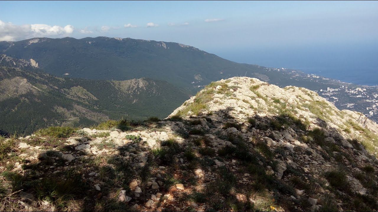 С высоты птичьего полёта Ялту видно, как на ладони, но пройдена лишь половина пути. По-этому через перевал Кизил-Кая-Богаз, что на Ялтинской яйле по одноимённому хребту (название хребта Кизил-Кая переводится, как "красная скала" из-за характерного цвета горной породы) начинаю спуск по петляющей среди заваленных деревьев тропе... Помощь каналу приветствуется: https://www.donationalerts.com/r/sergeypokidko