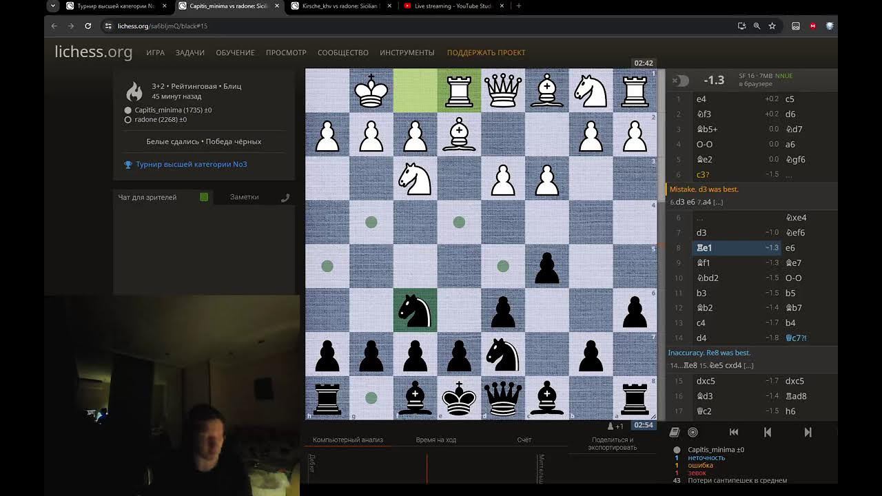Настала пора сыграть наконец запустить трансляцию поиграть в шахматы, выявить паршивцев в клубе, пообщаться с народом. турнир: https://lichess.org/swiss/iEjbrbfm если кому-то нравится мой "контент", то можете поддержать: https://www.donationalerts.com/r/radone