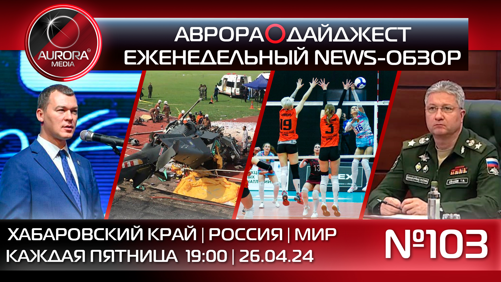 АВРОРА⭕️МЕДИА ЕЖЕНЕДЕЛЬНЫЙ ВИДЕО NEWS-РАЗБОР НЕДЕЛЯ | 19.04.24 - 26.04.24 АВРОРА⭕️ДАЙДЖЕСТ №103 НОВОСТИ ХАБАРОВСКОГО КРАЯ 🚩 Михаил Дегтярев поздравил компанию «Хабаровские авиалинии» с 20-летием 🚩 На заседании президиума регионального правительства обсудили готовность к проведению ЕГЭ 🚩 Глава региона отметил наиболее ярких театральных деятелей искусства 🚩 День открытых дверей прошел в учебных заведениях края 🚩 Борец из Комсомольска-на-Амуре взял бронзу первенства России по греко-римской борьбе 🚩 «Амурские тигрицы» с победы начали финальные матчи чемпионата России в Хабаровске НОВОСТИ РОССИИ 🚩 В Карачаево-Черкесии произошло нападение на полицейских 🚩 Замминистр обороны России Тимур Иванов арестован на два месяца НОВОСТИ МИРА 🚩 Десять человек погибли в результате столкновения двух вертолетов в Малайзии 🚩 Премьер-министр Великобритании пообещал Украине крупнейший пакет военной помощи || Актуальную информацию читайте: Сайт РИА АВРОРА⭕МЕДИА https://aurora.red/ || Телеграмм-экосистема А⭕М: | АВРОРА МЕДИА @aurora_media https://t.me/aurora_media | АВРОРА НОВОСТИ @news_aurora https://t.me/news_aurora | АВРОРА ХАБАРОВСК @khv_aurora https://t.me/khv_aurora | АВРОРА ЛАЙФ @life_aurora https://t.me/life_aurora | АВРОРА СПОРТ @sport_aurora https://t.me/sport_aurora | АВРОРА ГЕРЛС @girl_aurora https://t.me/girl_aurora | АВРОРА ХАЙТЕК @ht_aurora https://t.me/ht_aurora | АВРОРА ПЕРСОНЫ @people_aurora https://t.me/people_aurora | АВРОРА БЛОГ @media_aurora https://t.me/media_aurora || Aurora_Media: | Российское Информационное Агентство | +7(4212)900-900 media@auroragroup.info | +7(909)800-71-11 messenger #аврорамедиа #дайджест #новости #новостироссии #новостимира #новостихабаровска #новостидв