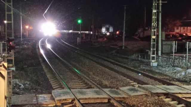 Быстрое на высокой скорости прибытие электропоезда ЭП2д Дмитров - Москва город Долгопрудный