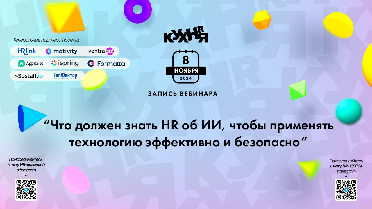 Присоединяйтесь к чатам и каналам HR-КУХНИ в телеграм: - Основной чат HR-КУХНИ в телеграм - https://t.me/+tYgAH0PgPQVkOWIy - Канал HR вакансий в телеграм - https://t.me/+CMNAN2u1hjo3M2Ri - Канал HR-EVENTS в телеграм - https://t.me/hr_kitchen - Канал HR JOURNAL в телеграм - https://t.me/hrkitchenjournal Полезные ссылки: - Каталог HR решений - https://hrkitchen.ru/exhibition - График конференций, бесплатных вебинаров, а также бесплатные курсы – https://hrkitchen.ru/ - Стать спикером HR-КУХНИ - https://hrkitchen.ru/speakers - Подписаться на полезную e-mail рассылку от HR-КУХНИ (новости, гайды, чек-листы, подарки от партнеров) - https://hrkitchen.ru/subscribe