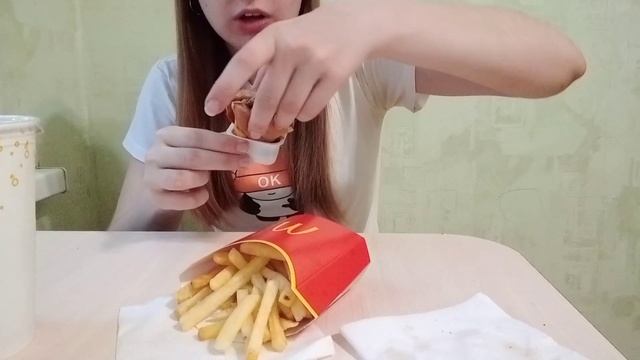 MUKBANG | МАКДОНАЛЬДС McDonald's | ОСТРЫЙ БУРГЕР | КОЛА | КАРТОШ?