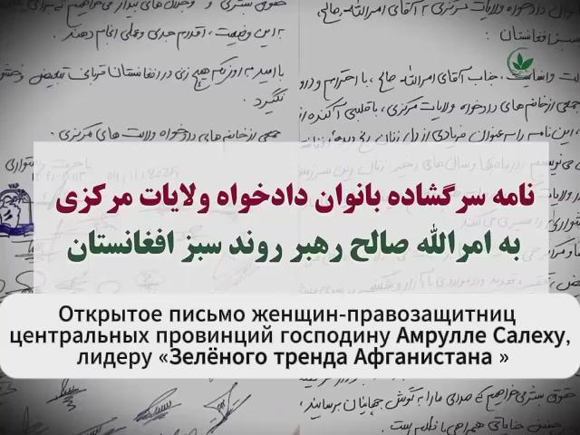 🇦🇫 Открытое письмо женщин-правозащитниц центральных провинций Афганистана, адресованное господину Амрулле Салеху, лидеру политического движения «Зеленый тренд Афганистана». «Зелёный тренд Афганистана» (также известное как Национальное движение Афганистана (Басидж-е Милли)) — центристская реформистская политическая партия и движение в Афганистане, основанное в 2011 году Амруллой Салехом, бывшим директором Национального директората безопасности Исламской Республики Афганистан.