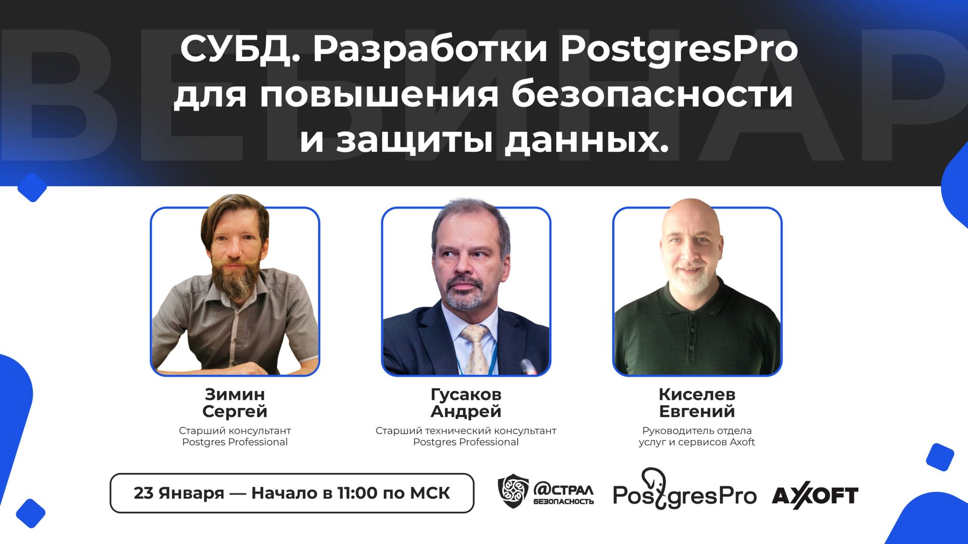 Вебинар: «СУБД. Разработки PostgresPro для повышения безопасности и защиты данных»