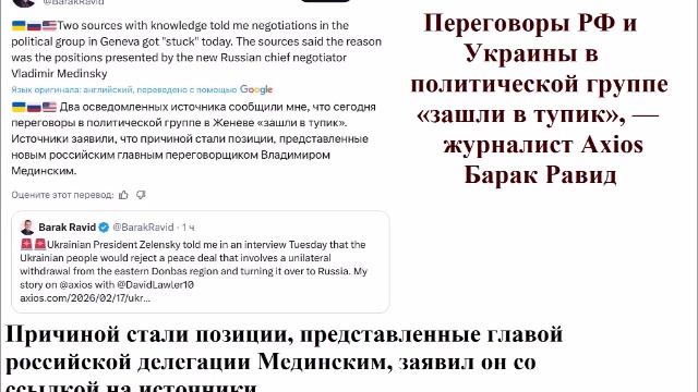 Переговоры РФ и Украины в политической группе «зашли в тупик», — журналист Axios Барак Равид.