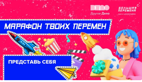 Марафон «Большой перемены» и «Другого дела» даёт возможность познакомиться с конкурсом и выиграть один из 500 призов, выполняя несложные задания. Представь себя! Это – твоя главная задача на первом конкурсном этапе «Знакомство». Здесь ты должен будешь снять видеовизитку и написать эссе, а для получения дополнительных баллов – пройти тестирование и рассказать о своем волонтерском опыте. Подробности первого этапа ждут тебя в сегодняшнем задании. Чтобы выполнить это задание, попроси своих близких рассказать о твоих сильных сторонах на видео! Сделаешь — заберёшь 200 баллов в сервисе «Другое Дело». #БольшаяПеремена #ДругоеДело #ВремяТвоихПеремен #РоссияСтранаВозможностей
