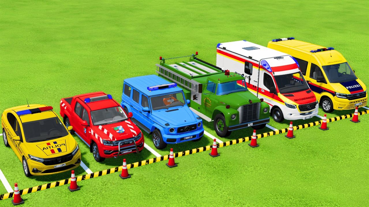 МУЛЬТИКИ ДЛЯ ДЕТЕЙ: ПОЛИЦЕЙСКИЕ АВТОМОБИЛИ ПОЖАРНЫЕ МАШИНЫ СКОРАЯ ПОМОЩЬ ГРУЗОВИКИ СИНИЙ ТРАКТОР