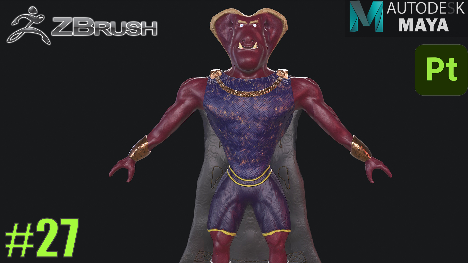 Полное 3D моделирование модели в ZBrush персонажа, создание 3d модели персонажа с нуля. Видео №27