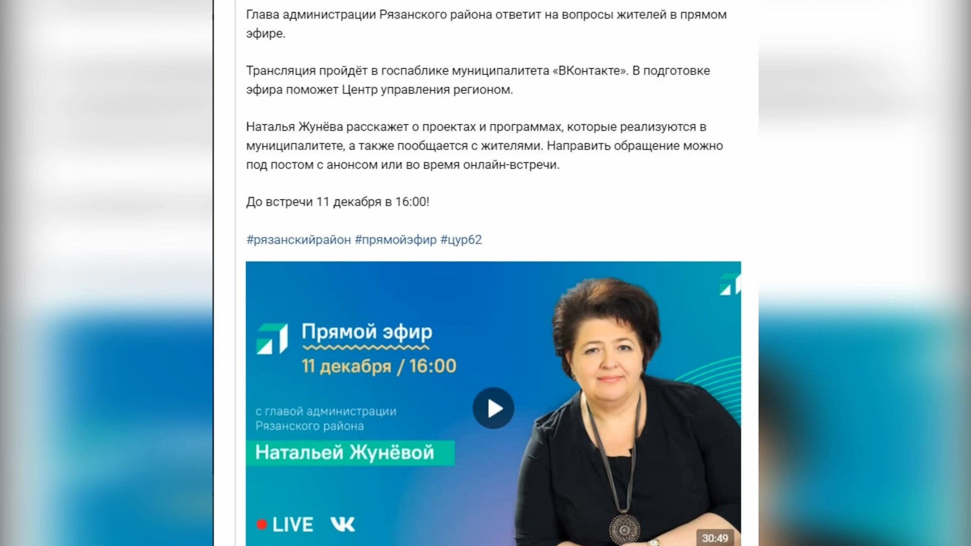 Вывоз мусора, безопасность в школах, качество воды — эти и другие темы подняли жители Рязанского района во время прямого эфира главы муниципалитета Натальи Жунёвой, который она провела в соцсетях. Он длился недолго — полчаса, но ответы на все вопросы были получены. К примеру, жители деревни Рожок нуждаются в обновлении Дома культуры, а посёлка Мурмино — в дополнительном вечернем рейсе общественного транспорта. Александра Тиняева подробнее. #рязань #рязанскийрайон #прямойэир #жители #ткр