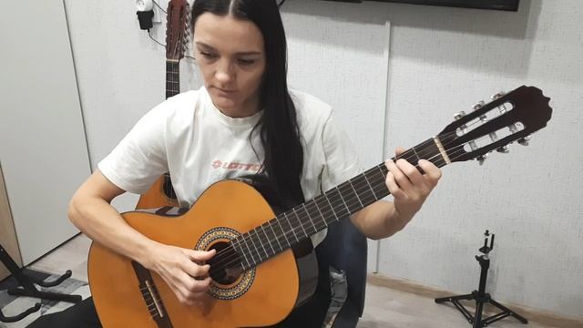 С Вероникой отрабатываем стиль "фингерстайл" на Цоевской "Кукушке". Получается неплохо , "схватила" главное, фингеровский ритм , щелчок- заглушку и мелодию...
