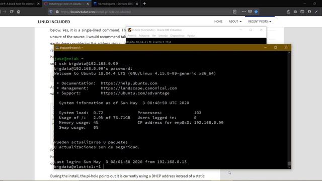 Se trata de un servicio que implementa la funcionalidad de filtrado de contenidos en la navegación de internet de los usuarios de una red local o corporativa. Se emplea fundamentalmente para evitar que los usuarios accedan a páginas que contienen anuncios, #malvertising o #malware en general, pero puede usarse para filtrar cualquier tipo de página web, para incluso implementar un potente sistema de control parental. Su funcionamiento es muy sencillo, actúa como un servidor DNS al que los usuarios realizan las consultas para resolver las direcciones IP de las URL de las páginas web. El servidor Pi-hole comprueba si dicha página web se encuentra en la lista negra (Black List), y en ese caso, procede a resolver dicha página con la IP del propio servidor, mostrando un mensaje (que puede ser configurado por la organización) informando al usuario de que dicha página ha sido bloqueada. Para poder grabar el video se ha implementado en una máquina virtual con Ubuntu Server 18.04 LTS, que es uno de los sistemas operativos soportados. Pero lo ideal es invertir unos 60 € y montarlo en una Raspberry Pi 3 Model B+ de 1GB de RAM, conectarla al router y proteger toda la red doméstica o corporativa de los molestos anuncios. También conseguiremos un alto nivel de privacidad por dos vías: - la primera evitar la telemetría que los sistemas Windows, los Chromecast y demás dispositivos envían a los dominios de sus fabricantes, - y la segunda utilizando DNS como Quad9 cuyas consultas van cifradas. Espero que os animéis a montarla en vuestras casas.