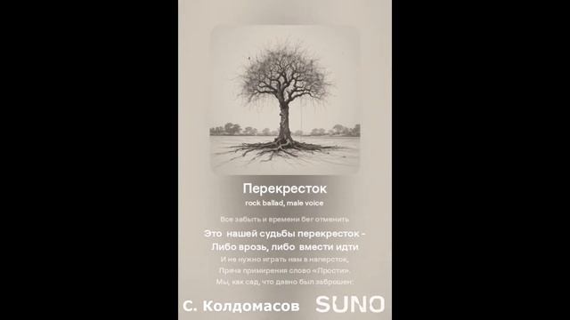 Люблю рок баллады) Текст - С. Колдомасов Аудио и визуал - Suno AI Стихи: Сергей Колдомасов - "Перекресток" (2018/12/07) (на сайте стихи.ру). Никакой вульгарщины или пропаганды, все совпадения чисто совпадения!